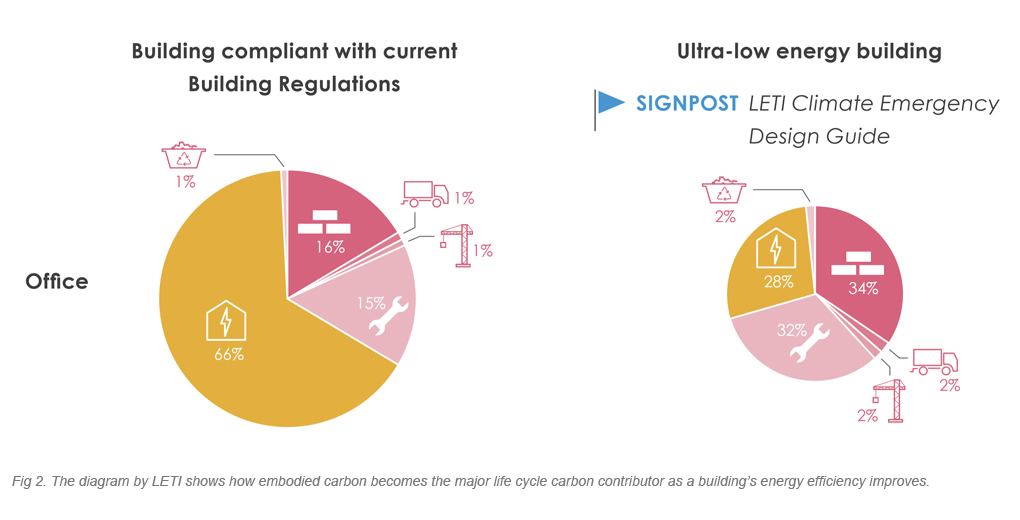 Less is More – ‘Keep it Simple’ is Key to Reducing a Building’s Whole-life Carbon Posted on: April 29th, 2020 Waterman’s sustainability experts have delved into building services’ strategies and how these can dramatically reduce the lifecycle embodied carbon of a commercial office development.Buildings need to be designed to be flexible and adaptable for generations to come rather than becoming obsolete and demolished once they can no longer perform their function. The operational energy use of our buildings is progressively reducing as we design them to become more energy efficient. But this is far from the full picture. [emaillocker id=”71749″] The lifecycle of MEP services and the choice of system for an office building have a significant impact on its overall embodied carbon. LETI highlights that MEP services represent around 15% of the embodied carbon in a new office development. However, these components have an economic lifespan ranging from 15 to 25 years and this means the real impact on the building’s carbon footprint becomes much greater. LETI predicts that ongoing maintenance and replacement account for 45% of whole life embodied carbon and a significant proportion of this is related to MEP systems. LETI also highlights that as buildings become more energy efficient and operational energy reduces, the embodied carbon from construction, maintenance and replacement account for two-thirds of the building’s lifecycle carbon.Old building stock not future proofA large proportion of 1960s and 70s commercial buildings have been demolished as they were not adaptable enough to be rejuvenated. These buildings were not designed for the future. They failed to accommodate modern working cultures and expectations. With today’s focus on sustainability and reduction in whole life carbon, buildings are now being designed with longevity in mind. However, we still find ourselves in a situation where the MEP systems are replaced at least two or three times over the normal life of an office building. The replacement of MEP systems is not just a question of lifespan. The continual retrofits and the churn of tenants in a building generally means substantial alterations, not only in the initial Cat B fit-out, but through the cycle of occupation. But it doesn’t stop there because at the end of occupation when leases expire, these spaces are altered again by being reverted to open plan. The continued drive for ‘fully-repairing leases’ means it is not uncommon for MEP systems, particularly heating and cooling, to be replaced far in advance of their economic lifespan. Flexibility – future occupier demandsThe length of lease cycles is reducing along with an increased demand from businesses for their workplaces to be scalable, which puts even more emphasis on the need for adaptability to avoid future carbon penalties. Knight Frank discusses this very issue in detail in their London Report 2019 – ‘A Design For Life’.The report highlights the desire for greater speed of occupation and amenity-rich buildings that support diverse and agile working environments that allow staff to work across functions or departments, often on a temporary basis.How can we reduce building services’ embodied whole-life carbon against the tide of shorter leases and changes in workplace cultures?Our sustainability experts have carried out studies to develop strategies that will assist developers in working towards net-zero carbon in their future developments. The focus has been to review which choice of air-conditioning systems has the least long-term carbon impact over a building’s lifecycle. The study led by Mark Terndrup, Director of Building Services, analysed the embodied carbon associated with the initial installation of different types of air-conditioning system and then added the embodied carbon associated with typical fit-outs, maintenance, repair and ultimately replacement.Mark says: “It is evident that Under-Floor Air Distribution (UFAD) systems are one answer to the challenge of energy efficient cooling whilst avoiding extensive whole-life carbon penalties. They have the least initial quantum of components installed and are far more favourable in carbon terms.UFAD means fewer physical components in the office space in comparison to alternatives like Fan Coil Units (FCU’s) and Chilled Beams.”The UFAD solution, uses an all-air based cooling strategy without ductwork or terminal units in the office space cutting out the embodied carbon normally incurred through terminal units such as fan coil units or chilled beams. Instead the raised floor is used as a supply plenum with simple manually adjustable swirl diffusers set in the floor tiles. This simple strategy means that adaptation for cellularisation is quick and simple while maintenance is minimal, with no need for replacement of parts. Alterations are generally limited to moving swirl diffusers and lights / detectors. This significantly reduces equipment replacement over the building’s lifecycle and maximises the opportunity for a net-zero carbon construction. With a conventional solution such as Fan Coil Units, as much as 30-50% of the system ends up being removed or altered by tenants as part of the initial fit-out. This percentage increases significantly over the operational life of the building. The multitude of components need replacement every 12 – 15 years. Range of benefitsUFAD systems require enhanced façade performance to limit solar gain in order to operate successfully. If designed correctly this can achieve free cooling for up to 85% of the year, reducing the overall operational energy. This is a major benefit for tenants and will be an asset to buildings of the future, particularly as UFAD works in harmony with mixed mode natural ventilation.We asked Mark if UFAD fits all types of buildings. He said: “The UFAD solution can even work in tall buildings, a floor-by-floor air handling plant strategy can be ado